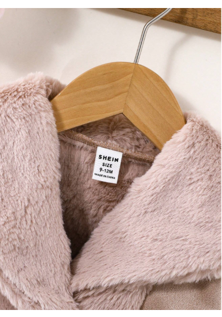Keep your little fashionista warm and stylish with this Baby Girl Fashion Contrast Fuzzy Panel Coat. Featuring a trendy color-blocked design with ultra-soft fuzzy panels, this coat combines modern style with snuggly comfort. The cozy interior keeps her warm during colder days, while the eye-catching contrast details add a touch of playful elegance. Features: Stylish contrast color design with fuzzy panel accents Soft, warm, and gentle on baby’s skin Easy front closure for quick dressing Lightweight yet cozy — perfect for layering Ideal for outings, photos, or chilly-weather play A statement piece that brings warmth and fashion together for your little one. Available size 12-18 Months Fabric 100% polyester