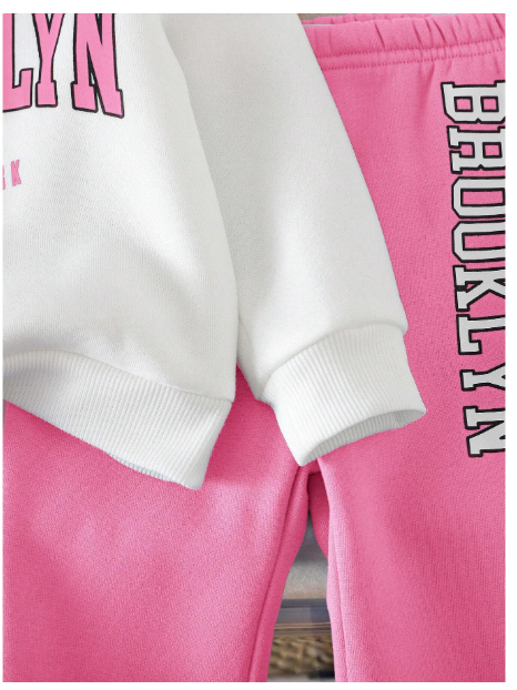 Keep your little one cozy and stylish with this adorable 2-piece set featuring a soft fleece sweatshirt and matching flare pants. The sweatshirt is playfully detailed with a trendy letter print, while the flare pants add a fun retro twist—perfect for fashion-forward mini wardrobes! Made from warm, plush fleece fabric, this outfit keeps baby girls comfy during chilly days, whether they’re crawling, playing, or out and about with you. Key Features: 2-piece set: fleece letter print sweatshirt + matching flare pants Soft, cozy fabric to keep your baby warm and snug Stretchy waistband for a comfy, secure fit Trendy design with a playful retro vibe Perfect for everyday wear, outings, or photo ops Available size 12-18 Months Fabric :100% polyester