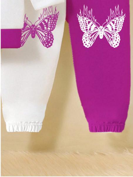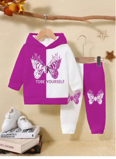 Adorable, comfy, and full of charm—this Infant Girls' 2-Piece Butterfly Print Set is the perfect blend of casual fashion and everyday comfort. Featuring a soft hoodie sweatshirt with a cute butterfly graphic and matching pants, this outfit is made for snuggles, playtime, and all-day wear. The relaxed fit and stretchy waistband ensure your little one stays cozy and free to move. With its sweet print and easy-to-wear design, this set is a go-to for any casual day or outing. Key Features: 2-piece set: butterfly graphic hoodie + matching pants Soft, breathable fabric gentle on baby’s skin Stretchy waistband for a comfy, secure fit Cute and colorful butterfly print for added charm Perfect for everyday wear, playdates, or cozy days at home Available size 12-18 Months Fabric : 95% polyester, 5% Elastane