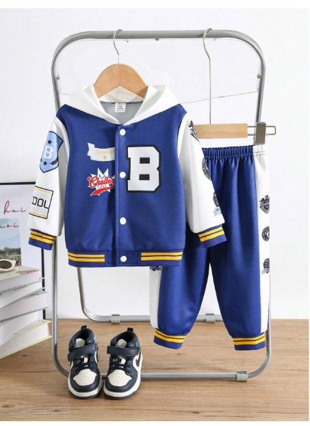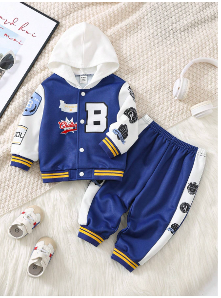 Dress your little one in sporty, everyday style with this adorable 2-piece set, featuring a bold letter print hoodie jacket and comfy matching jogger pants. With its trendy contrast color design and soft, breathable fabric, this outfit is perfect for active babies and toddlers on the go. Stylish Contrast Color Hoodie: Features fun letter prints and a modern design that stands out. Comfortable Jogger Pants: Elastic waistband and cuffed ankles for a secure and flexible fit. Unisex Design: Perfect for baby girls or boys—easy to mix and match with other wardrobe pieces. Soft & Kid-Friendly Fabric: Gentle on sensitive skin, ideal for playtime or lounging. Everyday Essential: Great for daycare, strolls, playdates, or casual outings. Functional, fashionable, and full of personality—this set keeps your baby looking cute and feeling cozy all day long. Available size 9-12 Months Fabric 100% polyester