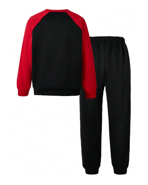 Keep your little one comfy and cool with this 2-piece boys’ casual outfit, featuring a stylish colorblock long sleeve crew neck t-shirt and cozy fleece pants. The fun letter print adds a trendy, sporty touch, while the soft, durable fabric ensures all-day comfort—perfect for play, school, or lounging at home. Designed for both style and practicality, the crew neck top offers a relaxed fit, and the fleece pants feature an elastic waistband for easy wear and movement. Key Features: 2-piece set: colorblock long sleeve t-shirt + fleece pants Trendy letter print design for a sporty look Soft, warm fleece pants for cool-weather comfort Comfortable crew neck and elastic waistband Great for casual wear, school days, or playtime Easy to mix and match with other wardrobe pieces An everyday essential for boys who love comfort with a cool twist! Available size 10 Years Fabric 100% polyester