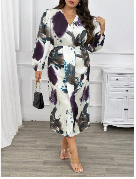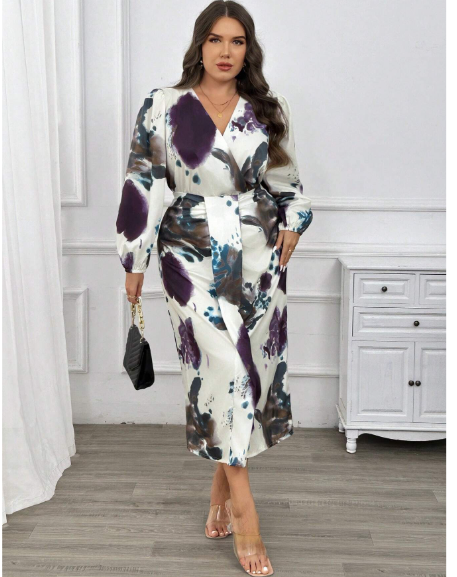 Turn heads with this stunning Wrap V-Neck Midi Dress Set, where bold design meets effortless elegance. Featuring a unique print dye pattern, pleated texture, and a flattering wrap-style V-neckline, this set is made to celebrate your curves in standout style. The high slit and split hem add a touch of drama and movement, while the long sleeves balance the silhouette with a sophisticated edge. Whether worn together or styled separately, this midi-length set is perfect for parties, dinners, or any occasion where you want to make a statement. Key Features: Eye-catching print dye design with pleated detailing Flattering wrap V-neckline for an elegant touch High slit and split hem for added flair and movement Long sleeves for a balanced, refined look Two-piece set for versatile styling options Ideal for special occasions, evenings out, or bold daywear Style it with heels and minimal accessories for a sleek, modern finish. Available size XL Fabric 95 % polyester,5% Elastane