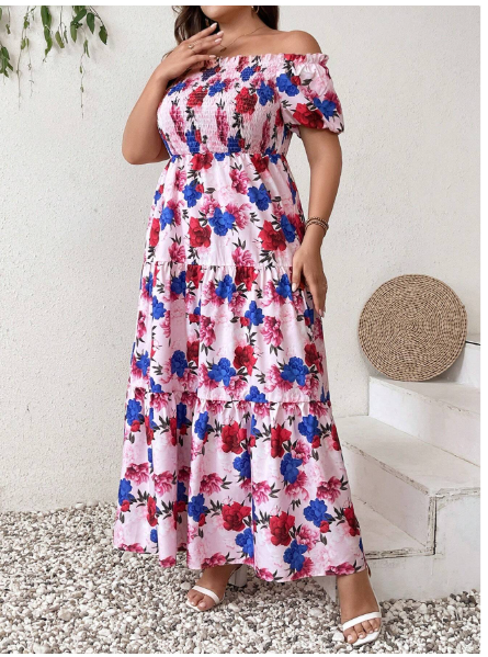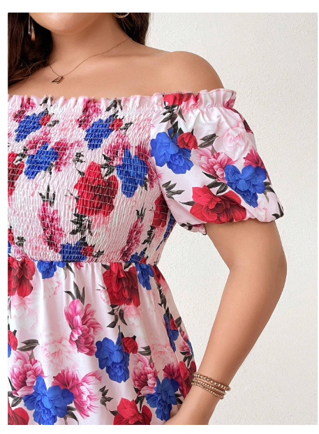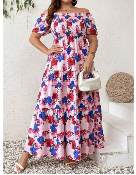 Breeze through your summer holidays in effortless style with this Plus Size Floral Print A-Line Dress, designed for both comfort and versatility. Featuring a random floral print that adds a fresh and carefree vibe, this dress offers the option to wear it off-shoulder for a flirty look or as a classic crew neck for a more casual feel. The loose A-line silhouette is flattering on every figure, giving you room to move while maintaining a feminine shape. Lightweight and breathable, it's the perfect go-to for beach days, sightseeing, or laid-back summer evenings. Key Features: Two-way neckline: wear it off-shoulder or as a crew neck Random floral print for a unique, summery look Flowy A-line cut for a flattering, relaxed fit Lightweight and breathable fabric for hot weather Designed with comfort and curves in mind Perfect for holidays, weekend getaways, or everyday wear Just pair with sandals and a sun hat for an easy, sunny-day outfit that feels as good as it looks! Available size 2XL Fabric 95% polyester, 5% Elastane