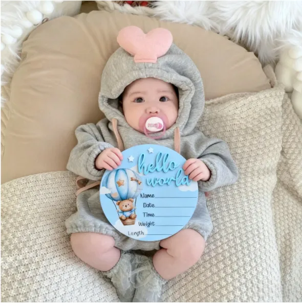 Introduce your little one in the sweetest way with this 1pc “Hello World” Birth Announcement Board — a charming keepsake designed to capture your baby’s very first milestone. 4 ✨ Product Features 👶 Adorable First Introduction Features the classic “Hello World” design, perfect for announcing your baby’s arrival to family and friends. 📝 Personalizable Details Includes space to record baby’s name, birth date, weight, and length — creating a meaningful and lasting memory. 🌿 Premium & Baby-Safe Material Made from smooth, sturdy material with fine craftsmanship for a polished look and safe use around newborns. 📸 Perfect Photo Prop Neutral, minimalist style complements any outfit or nursery theme, making it ideal for hospital photos and newborn shoots. 🎁 Keepsake Gift Idea A thoughtful gift for baby showers, expecting parents, or as a memorable hospital photo accessory. 📦 Package Includes 1 × “Hello World” Birth Announcement Board Capture the joy of your baby’s first hello with a timeless keepsake you’ll treasure forever.