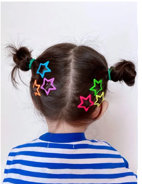 Add a touch of sparkle to your little one’s look with these adorable Colorful Star Shape Hair Clips! Designed especially for babies and kids, this 20-piece set features bright, cheerful colors that perfectly complement any outfit. Made with lightweight, child-friendly materials, these clips are gentle on delicate hair while providing a secure hold that stays in place throughout the day. The cute star design adds a playful charm, making them perfect for everyday wear, school, parties, photoshoots, and special occasions. Features: 🌈 20 pieces in assorted vibrant colors ⭐ Cute star shape design 👶 Gentle and safe for baby & kids’ hair 💕 Lightweight, comfortable & easy to clip 🎀 Perfect for daily wear, birthdays, and gifts A lovely and practical accessory set that keeps hair neat while adding a fun, colorful touch!