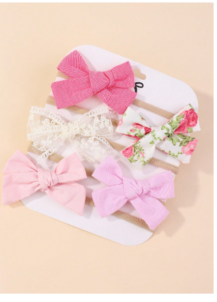 Add a pop of cuteness to your baby’s everyday look with this 5-piece Baby Bow Hair Band Set! Each headband features a delicately crafted bow in a range of charming colors and styles, perfect for matching with any outfit. Made with soft, stretchy elastic, these hair bands are designed to be gentle on your baby’s delicate skin and comfortable enough for all-day wear. Features: Set includes 5 adorable bow headbands in assorted colors Soft, stretchable material for a snug yet gentle fit Suitable for newborns, infants, and toddlers Lightweight and breathable for daily comfort Perfect for everyday wear, photoshoots, or baby shower gifts A delightful accessory set that adds a touch of style to every little outfit! Available size - one size Fabric - 95% polyester, 5% spandex