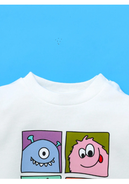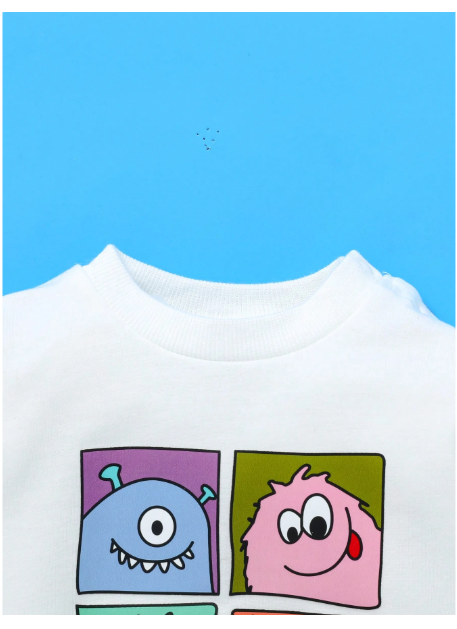 Add a splash of fun to your newborn's wardrobe with this adorable 2-piece set! Featuring a colorful cartoon monster graphic, the long sleeve top brings playful charm, while the matching pants ensure cozy all-day comfort. Made from soft, baby-friendly fabric, this outfit is perfect for playtime, tummy time, or casual outings. The round neck and elastic waistband make dressing quick and easy for busy parents. Features: Includes: 1 long sleeve top + 1 pair of pants Fun and colorful cartoon monster print Soft, breathable fabric gentle on baby’s skin Round neckline and elastic waistband for easy wear Perfect for: Daily wear, photos, and baby gifts Available size : 6-9 M Fabric: 95% polyester, 5% Elastane