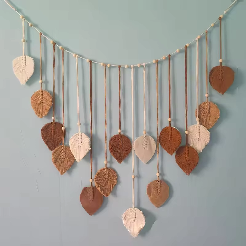 Transform your living space into a sanctuary of style with our Boho Home Decoration, featuring a stunning Macrame Tapestry that showcases an intricate design of leaf and feather motifs. This wall hanging decor not only adds a touch of warmth and character to your living room or bedroom but also embodies the free-spirited essence of Bohemian decor. Handcrafted with care, this macrame tapestry is a perfect blend of texture and art, enhancing your home’s aesthetic while promoting a sense of tranquility and comfort. - 🌿 Exquisite Handcrafted Design: Each piece is meticulously woven, ensuring unique patterns that stand out. - 🎨 Versatile Decoration: Ideal for any room, whether it’s a chic living room, serene bedroom, or cozy reading nook. - 🌈 Natural Materials: Made from eco-friendly cotton, it brings warmth and sustainability to your home. - ✨ Easy to Hang: Comes with a convenient hanging loop, allowing for effortless placement on any wall. - 🌀 Perfect Gift Idea: An ideal present for housewarmings, weddings, or special occasions that will be cherished for years to come.
