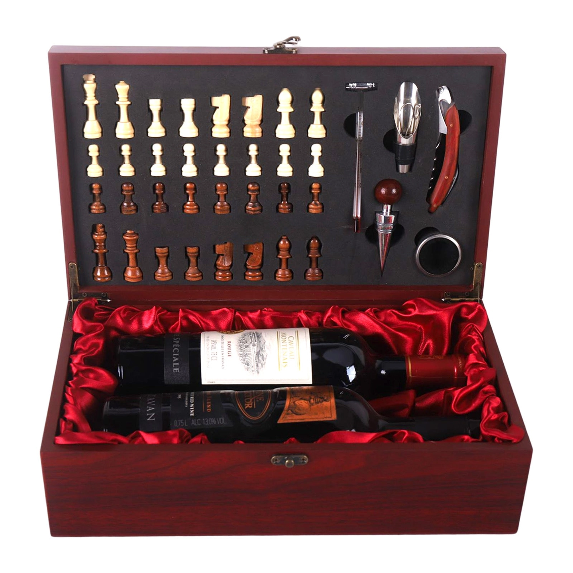 Elevate your gifting game with this luxurious Double Wine Gift Box featuring a built-in classic chess set. Perfect for weddings, anniversaries, corporate gifts, or birthdays, this box holds two wine bottles (not included) and includes a complete set of chess pieces for added charm. 🎁 Perfect Gift For: Wine lovers & chess enthusiasts Groomsmen or Father's Day Retirement gifts or client appreciation ✨ Highlights: 🧩 Built-in Chess Game (pieces included) 🍷 Holds 2 bottles of wine (not included) ✨ Customization available on request 📦 Strong & elegant wooden construction 🎉 Ideal for special occasions Note: Wine not included. Message us for personalization.