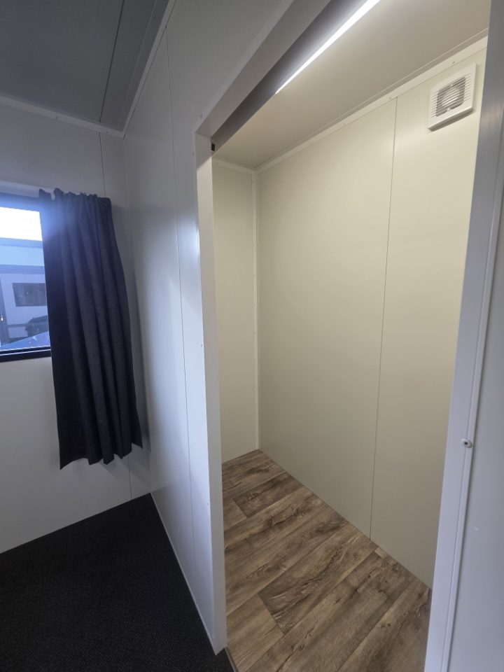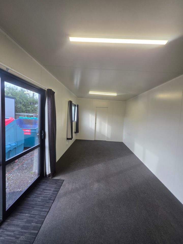 7.2m x 3m Portable Building – Ex-Rental Perfect for Office or Sleepout | Great Condition $160 per week (min. 12-month lease) Or Buy Now: $28,000 No bond or rent in advance required — just cover transport (approx. $500 within Christchurch area). Features: Curtains included 1m internal storage room or optional wardrobe Can be fitted with toilet, vanity & shower (extra cost) Multiple double power points LED lighting Curtains Tidy, solid unit – ready to go! We also have a range of sizes and layouts available — ready to view now! Located in Kaiapoi Transport can be arranged