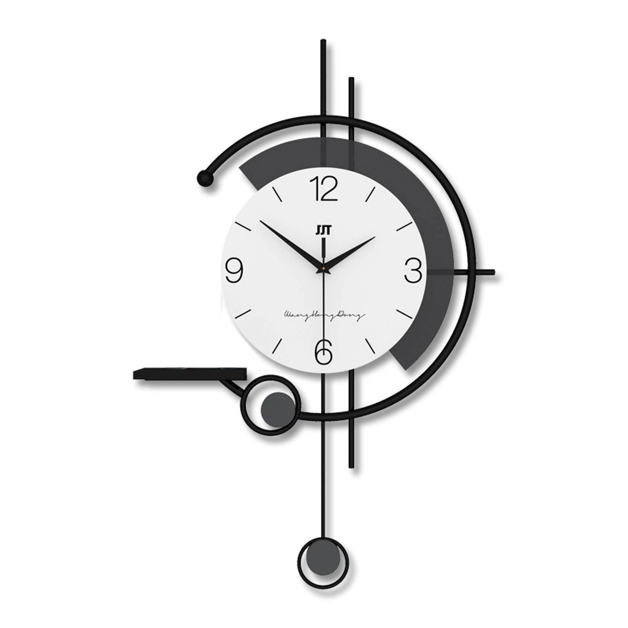 Elevate your modern decor with the Astronaut-Themed Wall Clock, blending sleek minimalism with playful space-inspired accents. The round white clock face, featuring black numerals and hands, sits within a semi-circular black and dark gray frame, exuding contemporary elegance. A small shelf on the left side holds two charming figurines: a larger astronaut in a white suit with gold accents and a smaller companion figure, adding a whimsical touch. Perfect for space enthusiasts and modern homes, this clock effortlessly combines style, functionality, and imagination. Key Features: Unique Astronaut Theme: Adds a playful yet sophisticated touch to your decor. Modern Minimalist Design: Clean black, white, and gray tones suit contemporary interiors. Functional and Decorative: Features an easy-to-read clock face with bold black numerals. Durable Build: Made with high-quality materials for lasting performance. Space-Inspired Accent Shelf: Includes a small shelf with detailed astronaut figurines. Additional Information: SIZE: 42*65 CM Material: Iron, MDF, Acrylic. Package Includes : Wall Clock shown in the picture. Note: Actual color may differ a little from the photos.